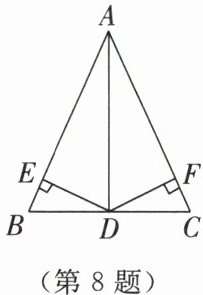 8. 如图,在△ABC中,D是BC的中点,DE⊥AB于点E,DF⊥AC于点F,且∠BDE= ∠CDF。请说明:AD平分∠BAC。
