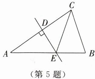 5. 如图,在$\triangle ABC$中,$AC的垂直平分线分别交AC$,$AB于点D$,$E$,连接$CE$。若$BC = 4$,$AB = 6$,则$\triangle CBE$的周长为______。