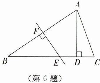 6. 如图,在$\triangle ABC$中,$AB的垂直平分线EF分别交BC$,$AB于点E$,$F$,过点$A作AD\perp BC于点D$,且$D为线段CE$的中点。
