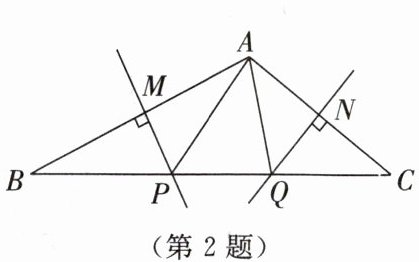 2. 如图,在$\triangle ABC$中,$PM$,$QN分别是线段AB$,$AC$的垂直平分线。若$\angle BAC = 110^{\circ}$,则$\angle PAQ = $()