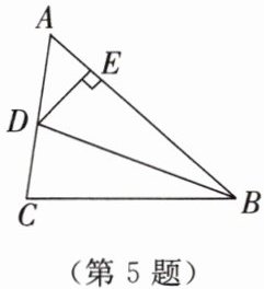 5. 如图,在$\triangle ABC$中,$BD是∠ABC$的平分线,$DE⊥AB于点E$,$\triangle ABC的面积是21cm^{2}$,$AB = 8cm$,$BC = 7cm$,则$DE = $______$cm$。