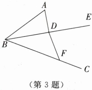 3. 如图,$BE是∠ABC$的平分线,$D是BE$上一点,$F是BC$上的一个动点。若$\triangle ABD$的面积为30,$AB = 12$,则线段$DF$的长不可能是()
