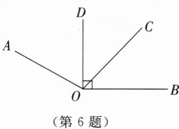 6. 如图,$∠BOD$为直角,$OC是∠BOD$的平分线,$∠AOB = 150^{\circ}$。