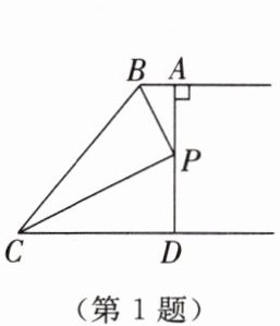 1. 如图,$AB// CD$,$BP和CP分别平分∠ABC和∠DCB$,$AD经过点P$,且与$AB$垂直。若$AD = 8$,则点$P到BC$的距离是()