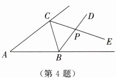 4. 如图,$\triangle ABC的外角的平分线BD$,$CE相交于点P$。若点$P到AC$的距离为3,则点$P到AB$的距离为______。