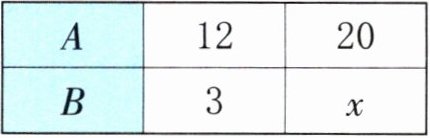 (6)如右表,如果A与B成正比例关系,那么x是( );如果A与B成反比例关系,那么x是( )。