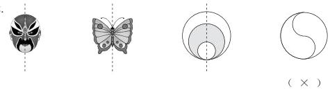 2. 下面的图形中,是轴对称图形的画出它的对称轴,不是的在括号里画“×”。