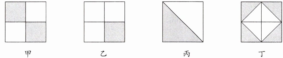 第一个图案选择了甲、丙两种瓷砖;第二个图案选择了甲、丁两种瓷砖。
