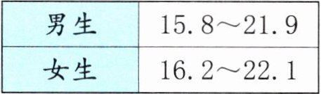 当$BMI = 16.2$时,$16.2−18=-1.8$;当$BMI = 22.1$时,$22.1 - 18 = 4.1$。所以女生为$-1.8\sim+4.1$。