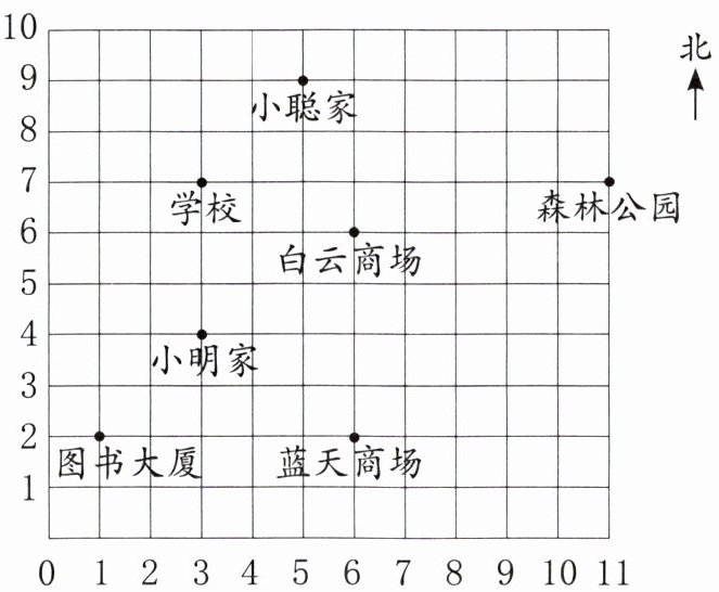 小明家() 小聪家() 图书大厦() 森林公园()