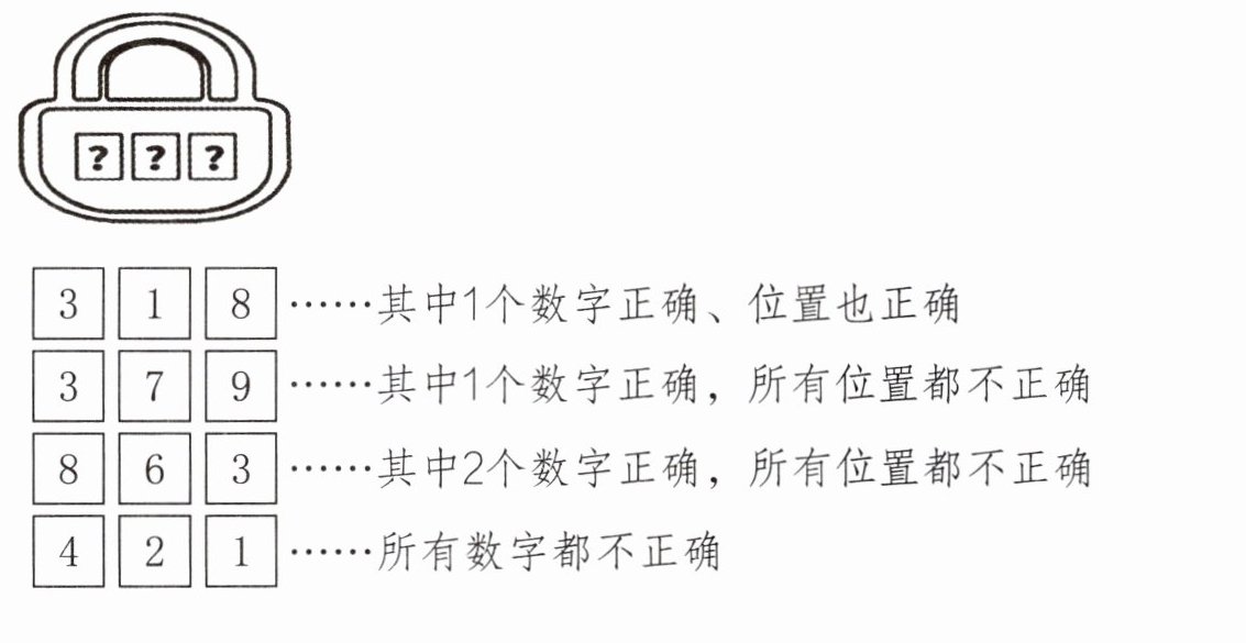 某密码由三个数字组成,已知下面四组数字及相应提示,请推断出正确的密码。
