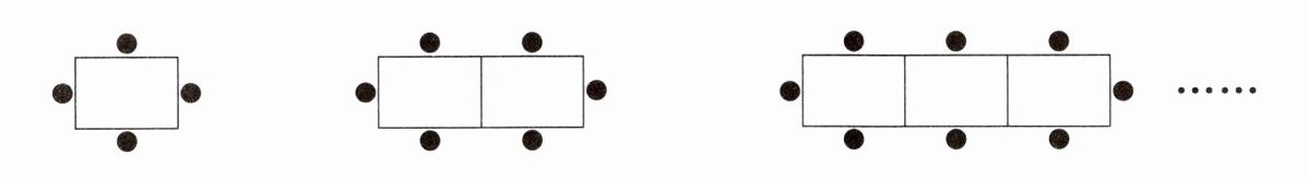 6. 某餐厅在摆放餐桌的时候有如下的规定:一张餐桌每边坐1人,可坐4人;当团体客人在4人以上时,可以将餐桌拼成一排(如下图)。