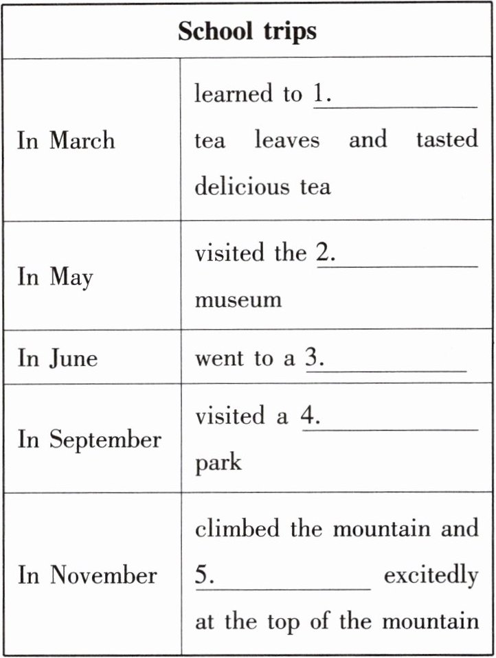 二、听下面一篇短文。根据短文内容完成下面的表格,每空一词。短文读两遍。