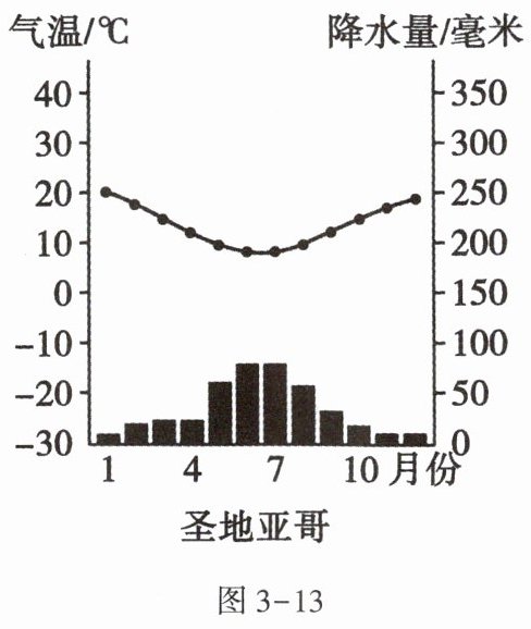 产自智利圣地亚哥附近的车厘子味道鲜美,色泽紫红,颗粒硕大,备受国人喜爱。图3-12为智利车厘子产区分布示意图,图3-13为圣地亚哥气候资料统计图。