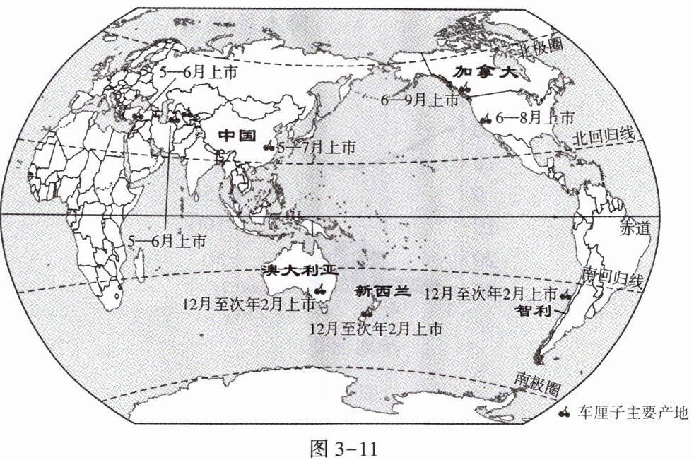 (2)对比车厘子在中国和加拿大的上市时间,并简析原因。