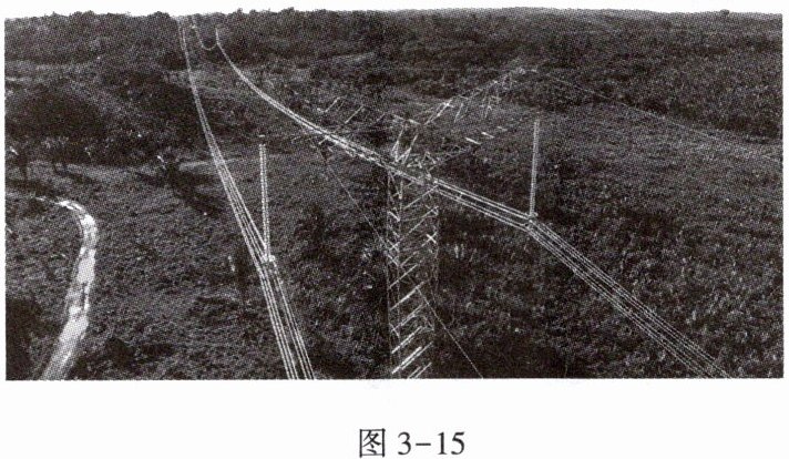 为保护环境,减少砍伐,工人们在穿越亚马孙雨林地区时,将输电铁塔架高到105米,比通常高出25米,虽然成本大大增加,但地面操作区域只需要10米宽,而一般的铁塔地面操作区域宽度要114米。图3-15为特高压穿越雨林景观图。