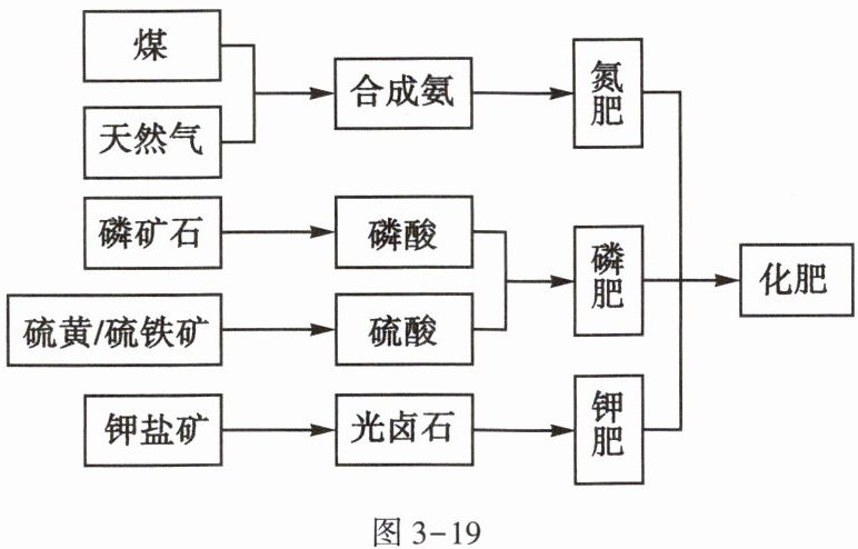 俄罗斯是世界上最大的化肥生产国和出口国。图3-18为俄罗斯矿产资源分布示意图,图3-19为化肥生产流程图。
