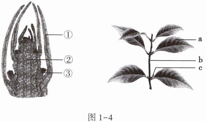 3. 图1-4为叶芽和枝条的结构示意图,下列相关叙述错误的是()