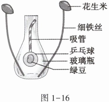 8. 某同学在学习了花的结构后,利用家庭常见材料制作了模型。模型如图1-16所示。下列说法错误的是()