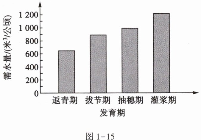 6. “春分麦起身,一刻值千金。”春分前后,冬小麦进入拔节期。图1-15是小麦在不同时期需水量的测量数据,从图中可以看出小麦的拔节期是()