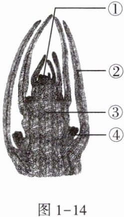 5. 图1-14是柳树的叶芽结构模式图,将来发育成茎的结构是()