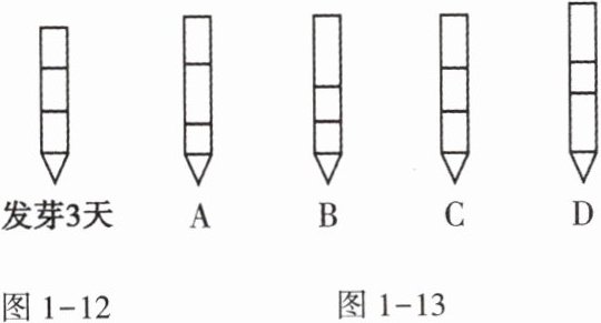 4. 图1-12是某种子发芽3天的根尖示意图,在图1-13中,表示7天以后根尖生长情况的正确图形是()