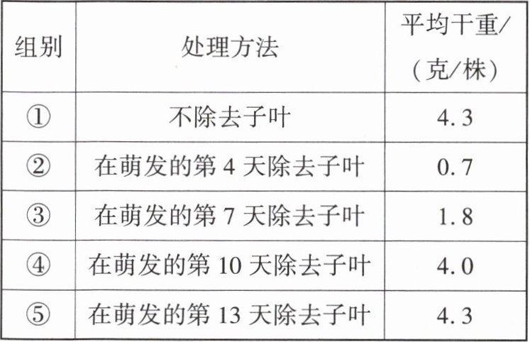 c. 两周后,收集所有幼苗,烘干,称量干重(主要是有机物的质量),所得结果如下表所示。