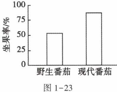 (3)为探究现代番茄花蕊结构变化对坐果率的影响,科研人员进一步研究了野生番茄和现代番茄坐果率的差异,结果如图1-23。