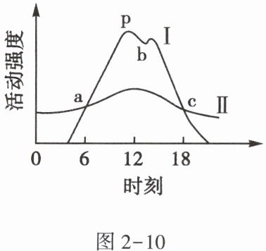 5. (2024·聊城)了解植物光合作用和呼吸作用的情况,可以帮助提高作物产量。关于玉米一天中生理过程变化的曲线(如图2-10),下列分析合理的是()
