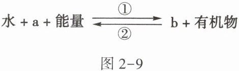 4. (2024·绵阳)图2-9中a和b代表两种物质,①和②表示绿色植物的两种生理过程。下列相关叙述错误的是()