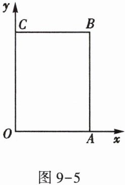 4. 如图 9-5,在以点 $ O $ 为原点的平面直角坐标系中,点 $ A $,$ B $ 的坐标分别为 $ (a,0) $,$ (a,b) $,点 $ C $ 在 $ y $ 轴上,且 $ BC // x $ 轴,$ a $,$ b $ 满足 $ |a - 3|+\sqrt{b - 4}= 0 $。点 $ P $ 从原点出发,以每秒 $ 2 $ 个单位长度的速度沿着 $ O - A - B - C - O $ 的路线运动(回到点 $ O $ 为止)。