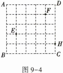 3. 如图 9-4,正方形 $ ABCD $ 由 $ 25 $ 个边长相等的小正方形组成,将此网格放到平面直角坐标系中,若点 $ E $,$ F $ 的坐标分别是 $ (-1,0) $,$ (2,2) $,则点 $ H $ 的坐标是______。