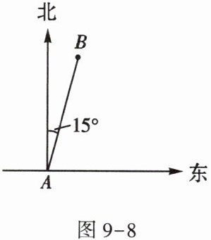 3. 如图 9-8,一艘中国无人战舰 $ A $ 在我国的南疆执行巡航任务。某一时刻,它与灯塔 $ B $ 相距 $ 90n mile $。若灯塔 $ B $ 相对于战舰 $ A $ 的位置用有序数对(北偏东 $ 15^{\circ} $,$ 90n mile $)来描述,则战舰 $ A $ 相对于灯塔 $ B $ 的位置可描述为()
