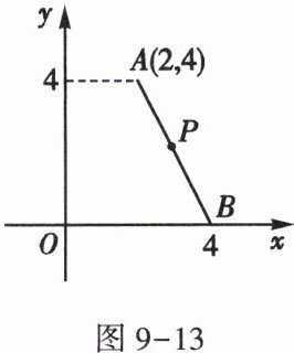 3. 如图 9-13,在平面直角坐标系中,点 $ A $,$ B $ 的坐标分别为 $ A(2,4) $,$ B(4,0) $,且 $ P $ 为 $ AB $ 的中点。若将线段 $ AB $ 向右平移 $ 3 $ 个单位长度后,与点 $ P $ 对应的点为 $ Q $,则点 $ Q $ 的坐标是()