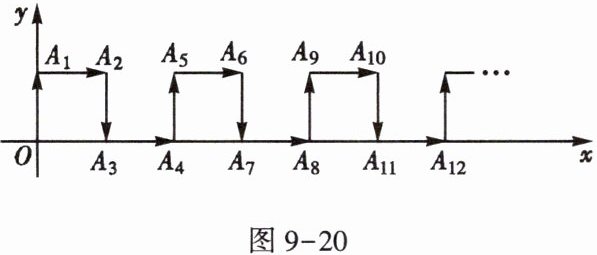 10. 在平面直角坐标系中,一个智能机器人接到的指令是:从原点 $ O $ 出发,按“向上→向右→向下→向右”的方向依次不断移动,每次移动 $ 1 $ 个单位长度。其移动路线如图 9-20 所示,第一次移动到点 $ A_1 $,第二次移动到点 $ A_2 … … $ 第 $ n $ 次移动到点 $ A_n $,则 $ A_{2052} $ 的坐标是______。