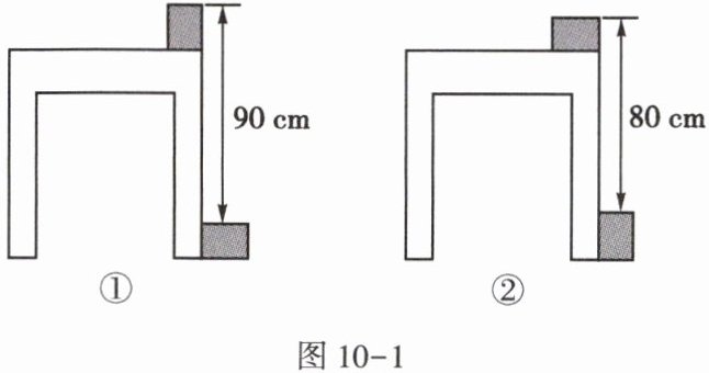 4. 如图10-1,利用两个外形一致的长方形木块测量一张桌子的高度,先按图10-1①所示方式放置,再交换两木块的位置,按图10-1②所示方式放置,测量的数据如图中所示,则桌子的高度是()