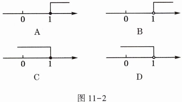 1. 不等式$x + 1 \geq 2$的解集在数轴上的表示为图11-2中的()