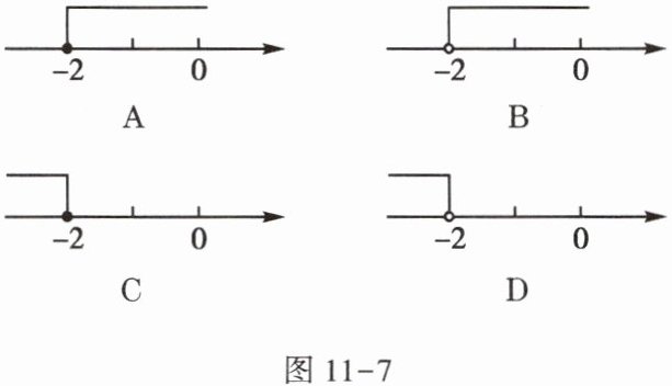 1. 不等式$\frac{x - 1}{3} < x + 1$的解集在数轴上的表示应是图11-7中的()