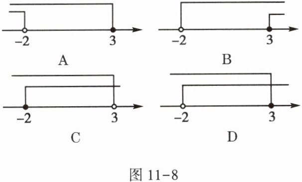 4. 不等式组$\begin{cases}\frac{1}{2}(x + 1) \leq 2, \\ x - 3 < 3x + 1\end{cases}$的解集在数轴上的表示应是图11-8中的()