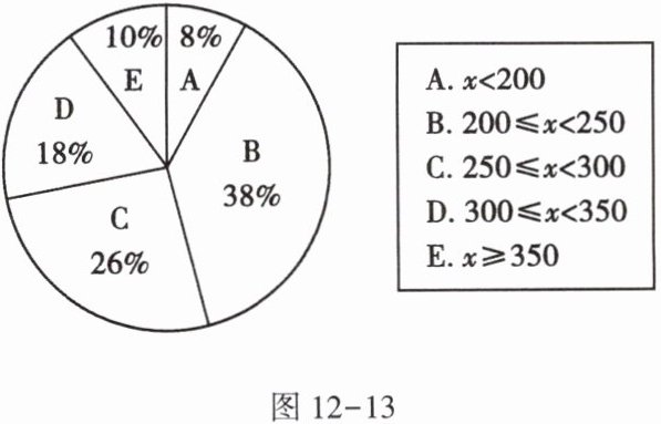 11. 某林木良种繁育试验基地为全面掌握“无絮杨”品种苗的生长规律,定期对培育的1 000棵该品种苗进行抽测。如图12-13是某次随机抽测该品种苗的高度x(单位:cm)的统计图,则此时该基地高度不低于300 cm的“无絮杨”品种苗约有______棵。