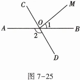 8. 如图7-25,直线AB,CD相交于点O。若$∠1= 40^{\circ }$,$∠2= 120^{\circ }$,则$∠COM$的度数为()