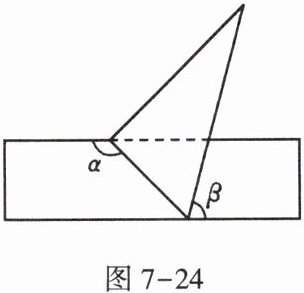 6. 如图7-24,将一块含有$30^{\circ }$角的直角三角板的两个顶点分别放在直尺的两条平行对边上。若$∠α=135^{\circ }$,则$∠β$的度