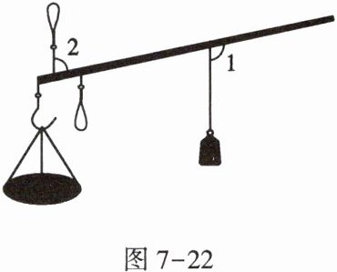 2. 一杆古秤在称物时的状态如图7-22所示,已知$∠1= 102^{\circ }$,则$∠2$的度数为____。