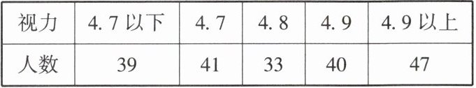 7. 某市为了解初中学生的视力情况,随机抽取200名初中学生进行调查,整理样本数据如下表。根据抽样调查结果,估计该市16 000名初中学生中,视力不低于4.8的人数是()