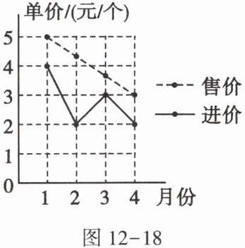 8. 如图12-18是友谊商场某商品1~4月份单个的进价和售价的折线统计图,则售出该商品单个利润最大的是______月份。