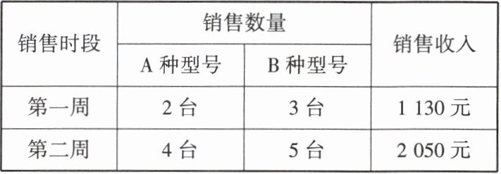 23. 某电器超市销售A,B两种型号的电风扇,A种型号每台进价为180元,B种型号每台进价为150元,下表是近两周的销售情况.