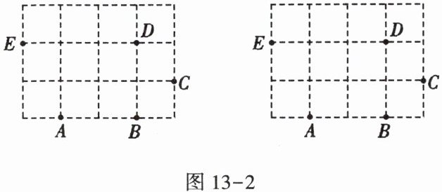 4. 如图13-2,过A,B,C,D,E五个点中任意三点画三角形: