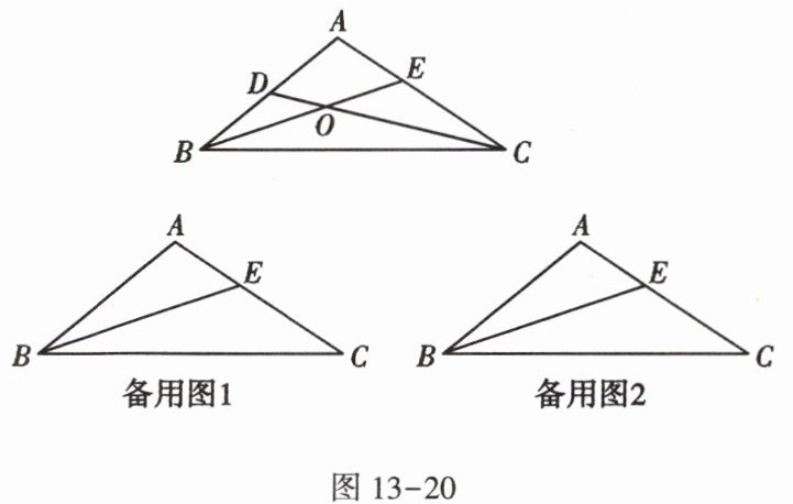 4. 如图13-20,在$\triangle ABC$中,BE是角平分线,点D在边AB上(不与点A,B重合),CD与BE交于点O.