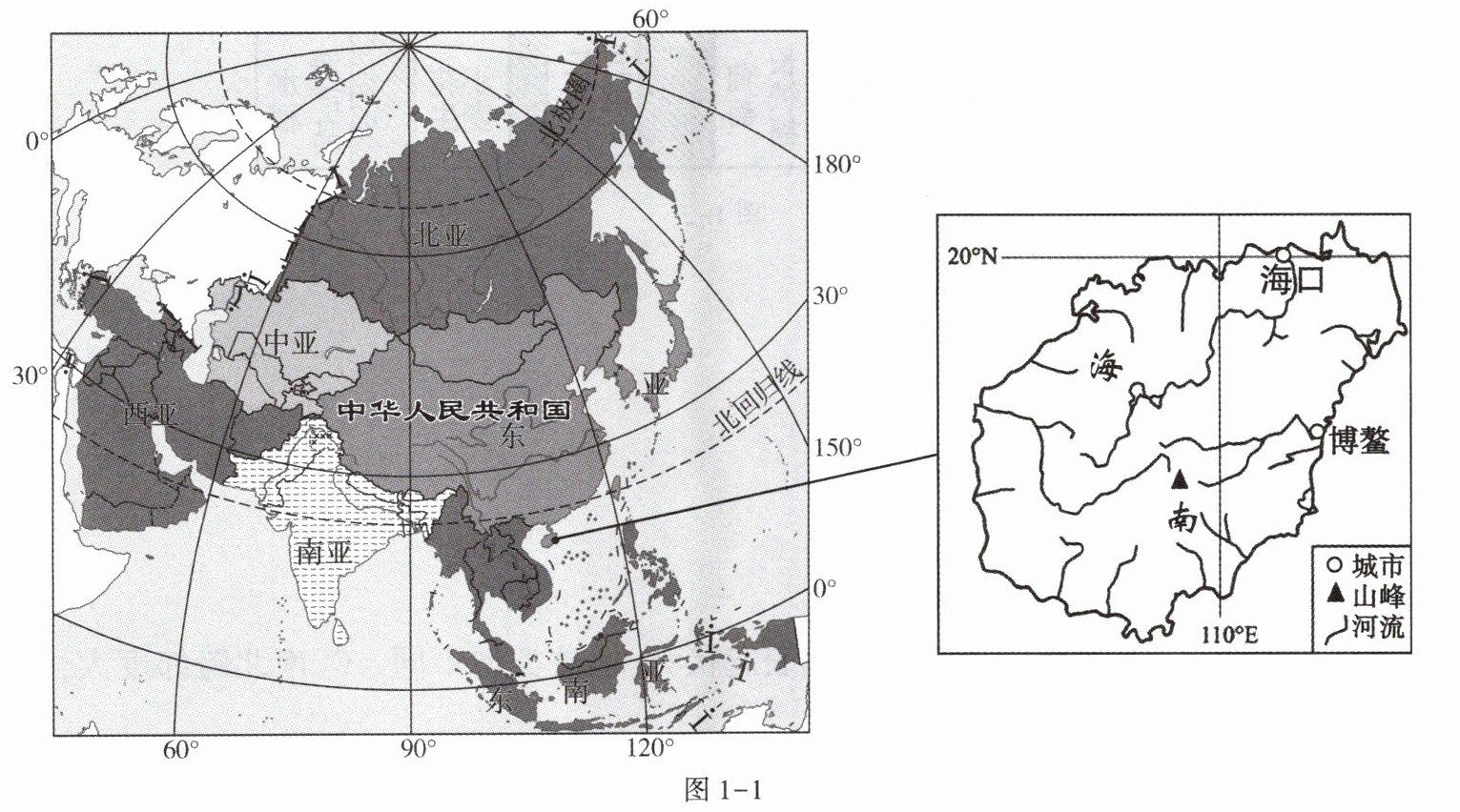2024年3月28日,备受瞩目的博鳌亚洲论坛年会在中国海南博鳌拉开帷幕,此次年会的主题为“亚洲与世界:共同的挑战,共同的责任”。图1-1为亚洲地理分区示意图。据此完成1~3题。