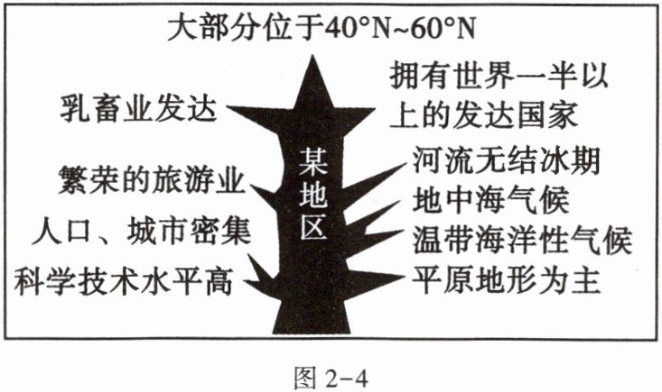 地理“知识树”可以帮助我们建构知识体系,拓展地理思维。图2-4是某同学绘制的世界某地区“知识树”。据此完成5~6题。